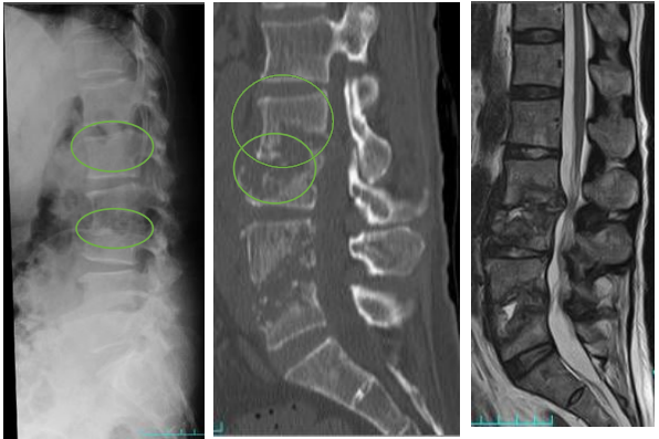 (引用:日本脊髄外科学会より。)終板(椎体の端の高吸収な領域)が壊されてるかどうか確認