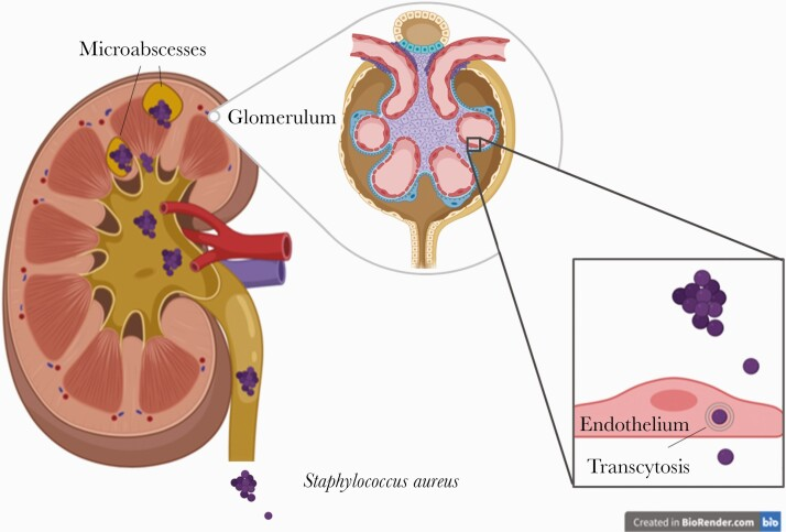 腎臓学会総会で、MRSAがどうやって髄質から皮質までの微小膿瘍形成をしていくか紹介されていました。腎髄質の高浸透圧が髄質が壊されるまで好中球の遊走を妨げるようです。